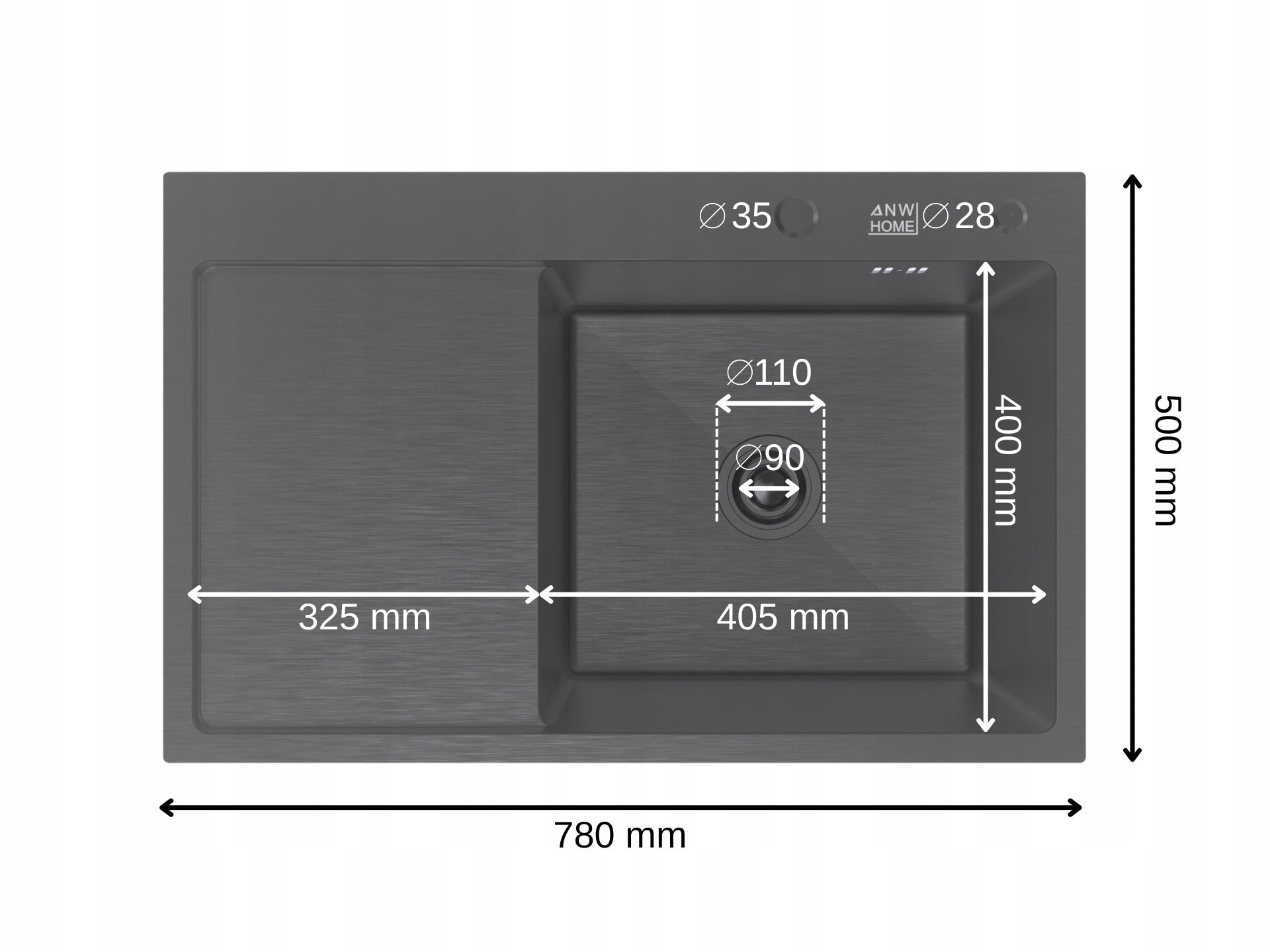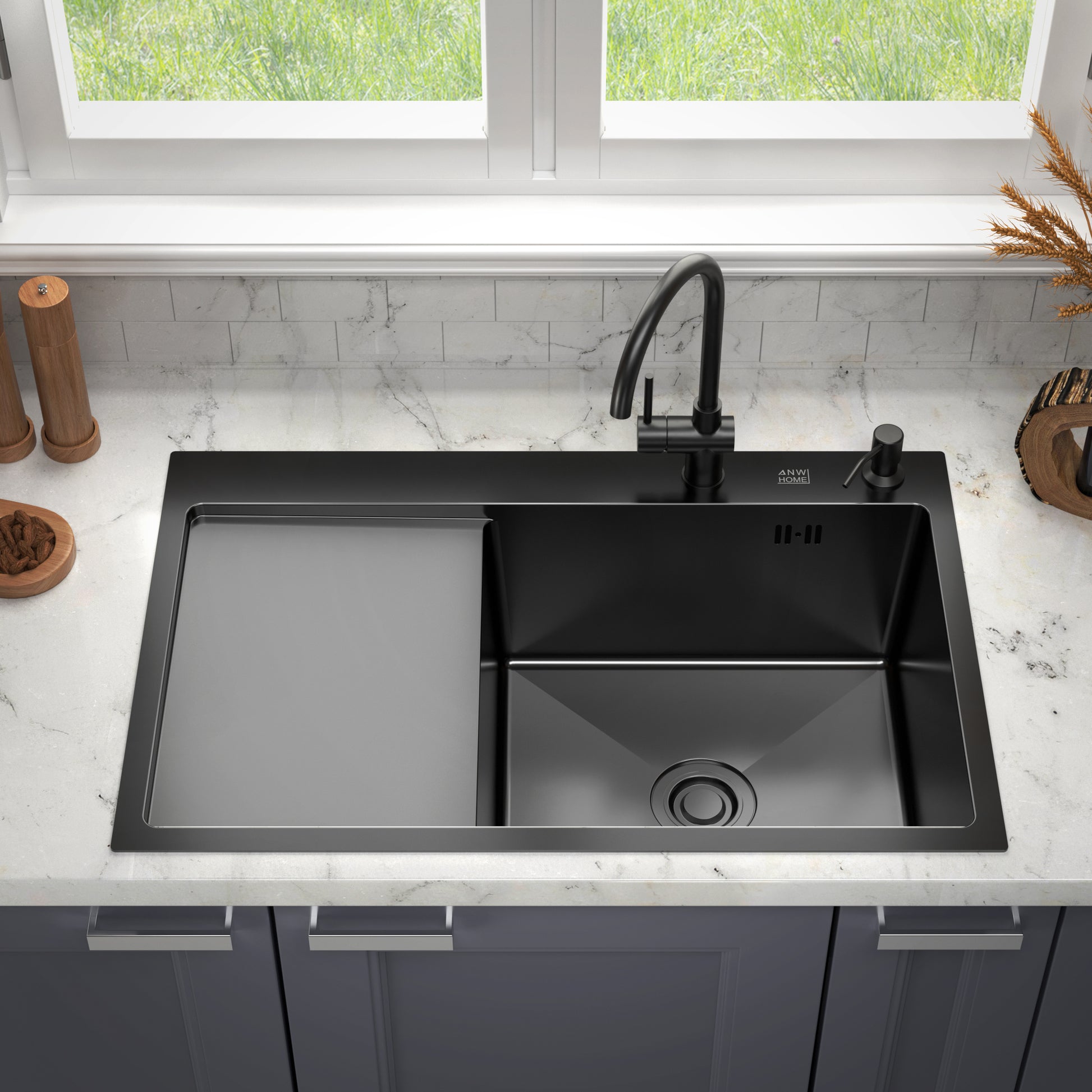ANW HOME Graphit-Küchenspüle – 78 x 50 x 22 cm, Edelstahl, Top-Mount, Komplettset