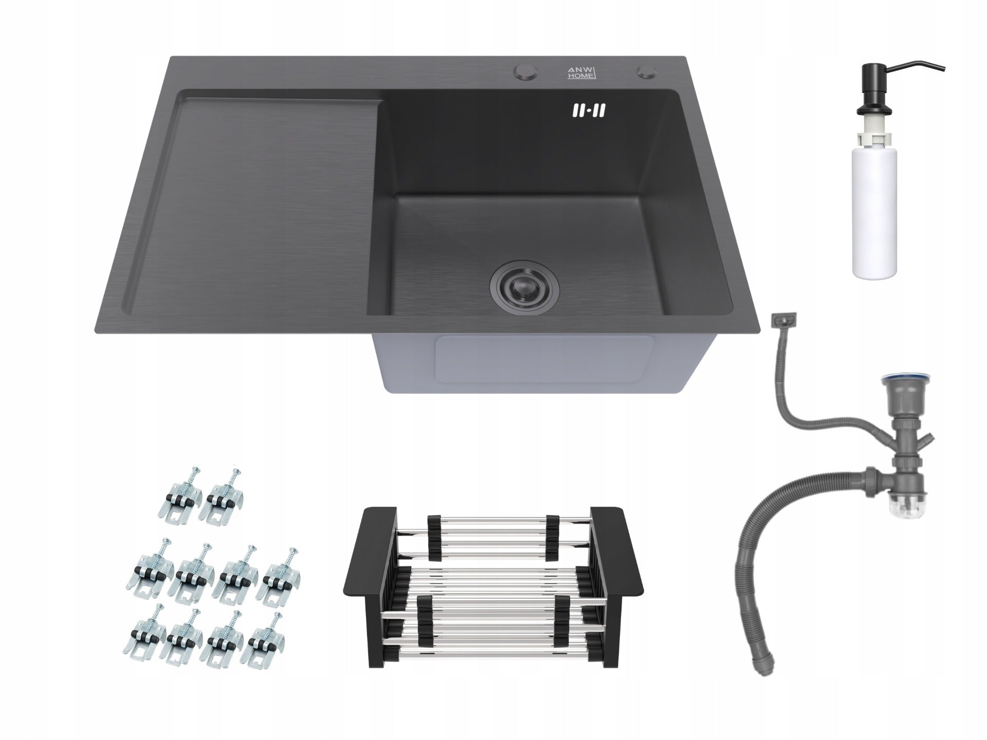🍽️ ANW HOME LS-7850RB Graphit-Küchenspüle – 78x50x22 cm, Edelstahl, Aufsatzmontage, Komplettset