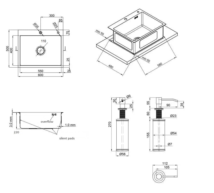 Edelstahlspüle 60x50 Satin Inox