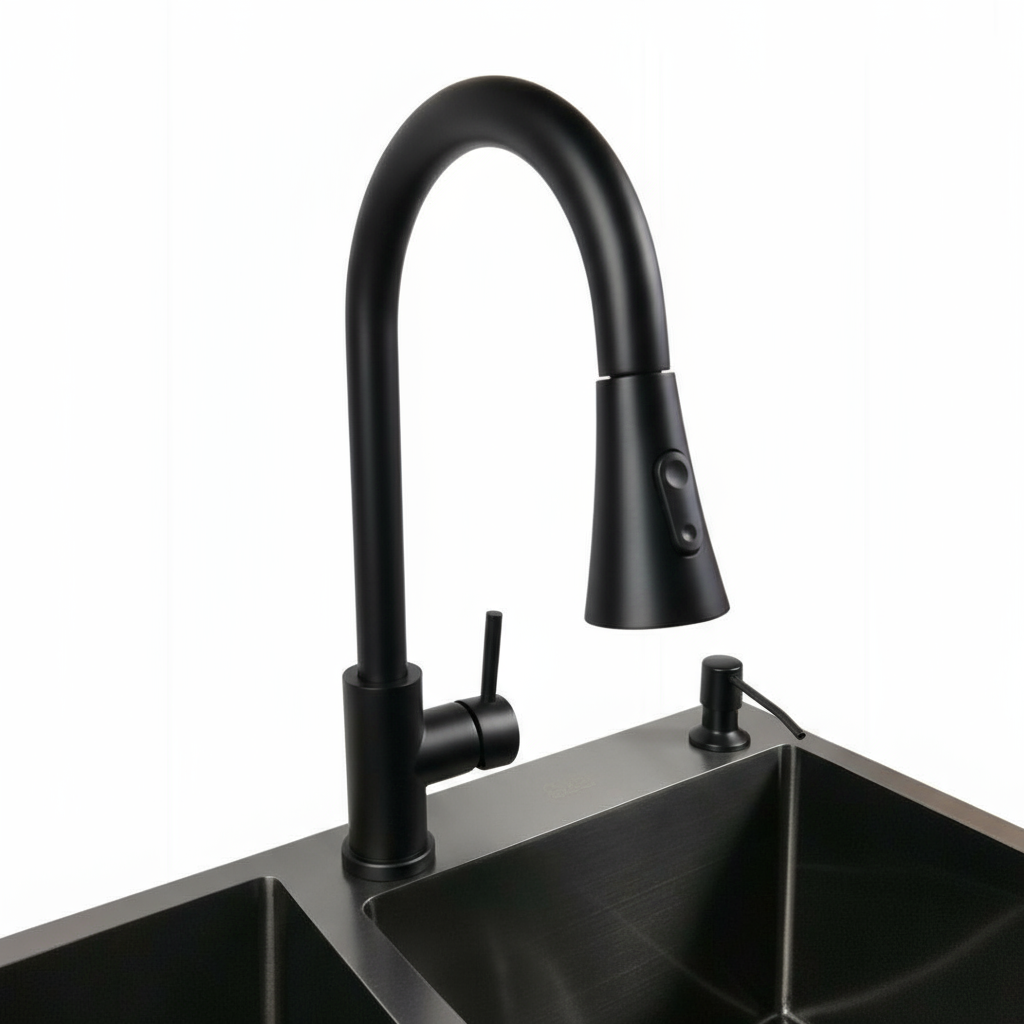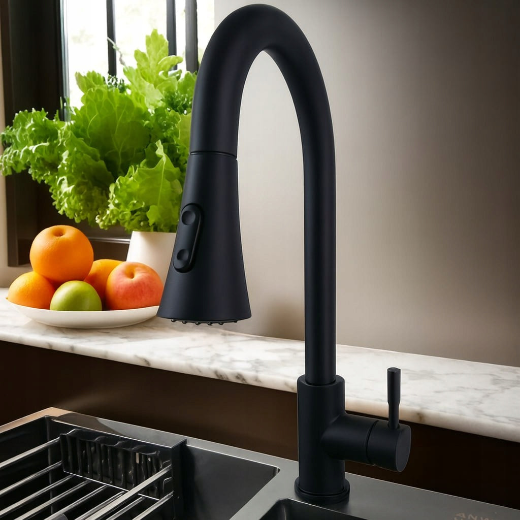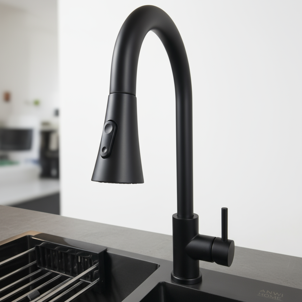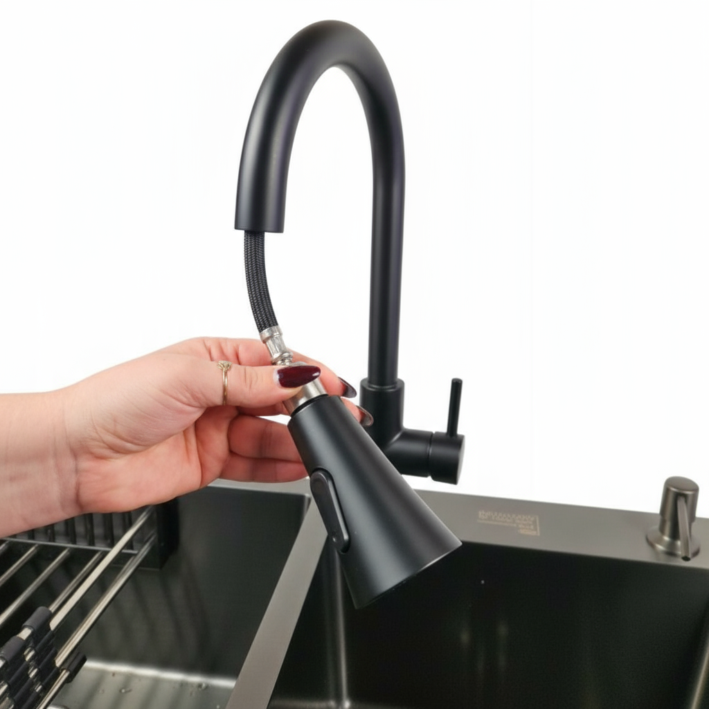 Die aus hochwertigem Edelstahl der Marke 304 gefertigte Küchenarmatur mit ausziehbarem Auslauf ist ein multifunktionales Einhebelmodell, das sich durch sein modernes Design, seine praktische Konstruktion sowie seine einfache Installation und Bedienung auszeichnet.