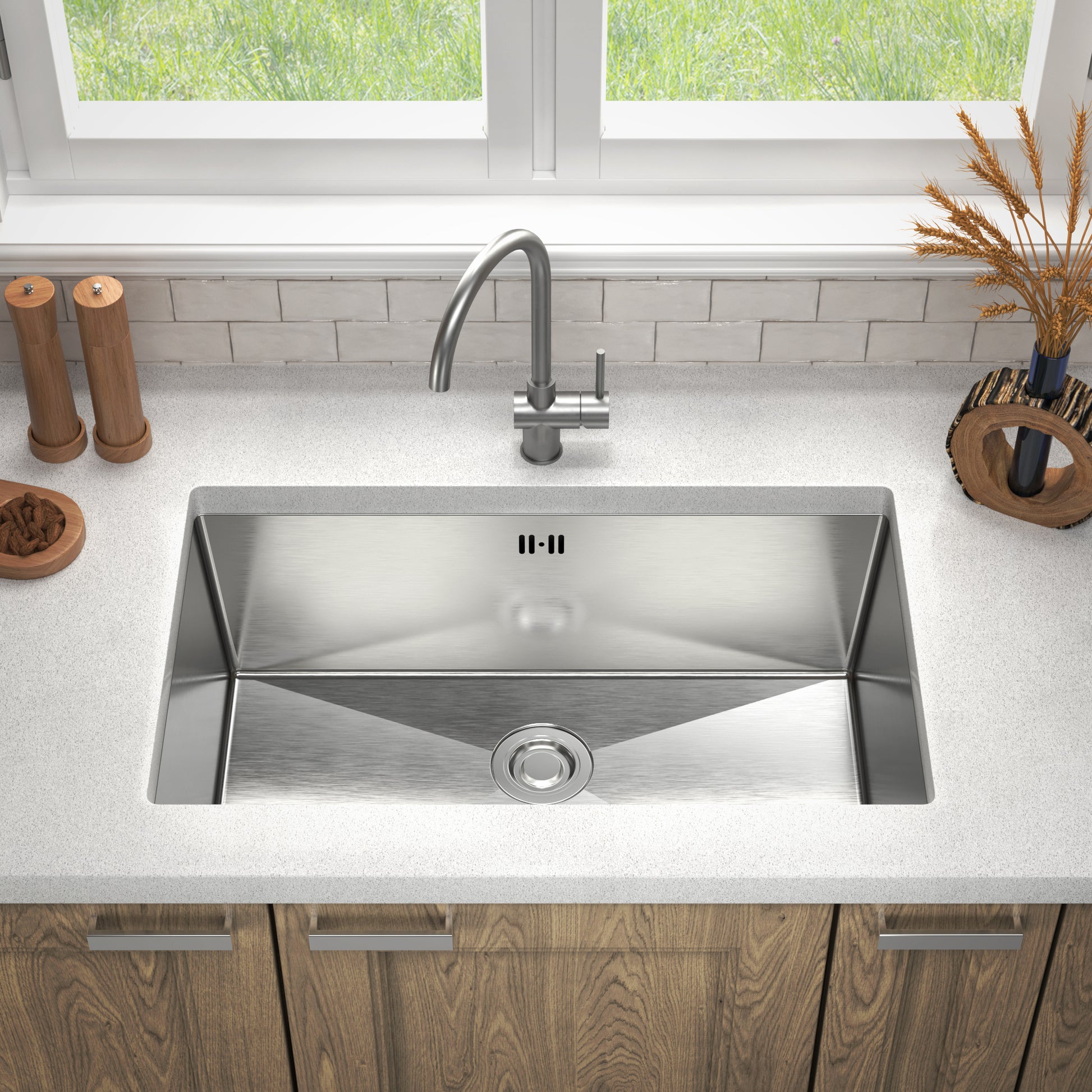 Werten Sie Ihre Küche mit der ANW HOME Edelstahlspüle auf – langlebig, stilvoll und alltagstauglich. Hergestellt aus hochwertigem 304 Edelstahl mit satinierter Oberfläche ist diese Spüle kratz-, flecken- und chemikalienbeständig. Das 22 cm tiefe Becken bietet ausreichend Platz zum Spülen von großem Kochgeschirr, während die nahtlose Unterbaumontage jeder Küche einen eleganten, modernen Look verleiht.
